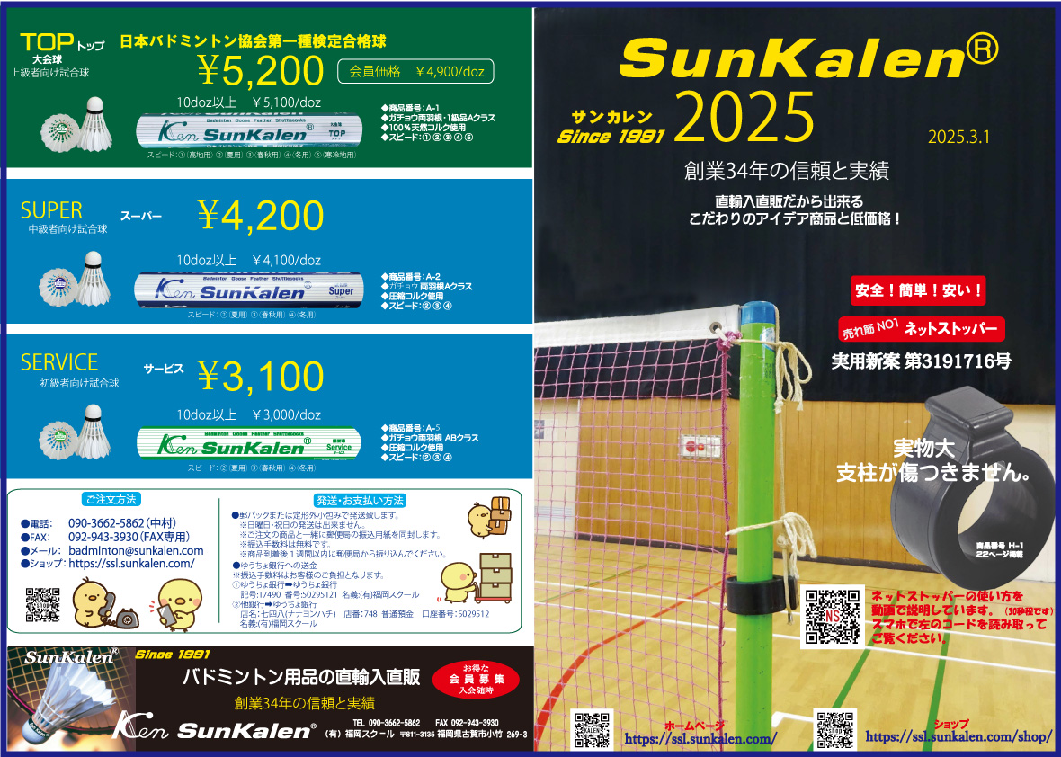 ★メール:badminton@sunkalen.com